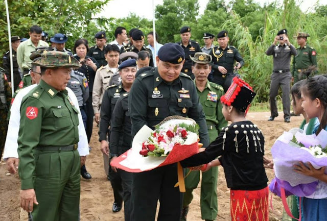 พล.ต.จิรเดช กมลเพ็ชร ผบ.กกล.ผาเมือง พร้อมด้วย ฝสธ.กกล.ผาเมือง ให้การต้อนรับ พล.ต.อ่อง ส่อ เอ ผบ.ภทบ.พื้นที่สามเหลี่ยม และคณะ ในโอกาสเดินทางมาร่วมเป็นประธานในการจัดกิจกรรมโครงการผืนป่าอาเซียน ณ จุดผ่อนปรนการค้า บ.ปางห้า ต.เกาะช้าง อ.แม่สาย จว.ช.ร. และที่ บ.โป่ง ม.พง สมม.